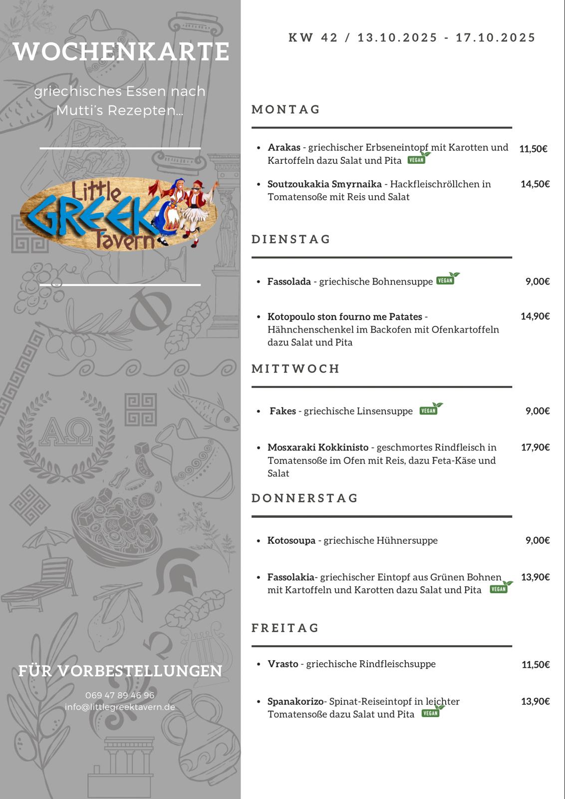 Tauchen Sie ein in die authentische griechische Atmosphäre der Little GREEK Tavern. Unser einladender Tisch ist gedeckt mit einer Auswahl an traditionellen griechischen Speisen und Getränken.